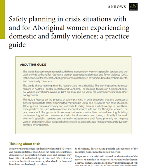 Safety planning in crisis situations with and for Aboriginal women experiencing domestic and family violence: A practice guide