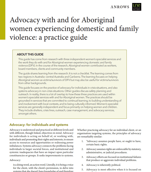 Advocacy with and for Aboriginal women experiencing domestic and family violence: A practice guide