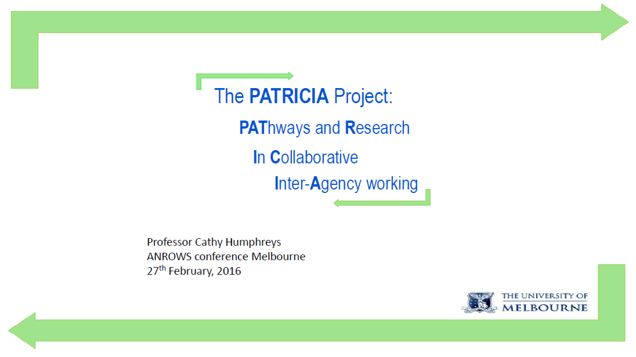 PAThways and Research Into Collaborative Inter-Agency practice: Collaborative work across the child protection and specialist domestic and family violence interface: The PATRICIA Project. Final report