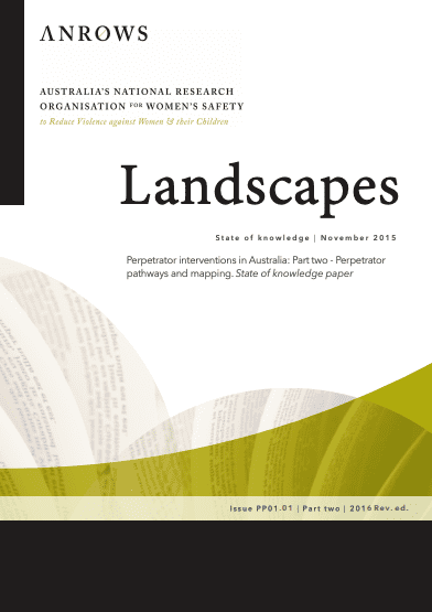 This work is part of the ANROWS Landscapes series. ANROWS Landscapes (State of knowledge papers) are medium length papers that scope current knowledge on an issue related to violence against women and their children. Papers will draw on empirical research, including research produced under ANROWS’s research program, and/or practice knowledge.
